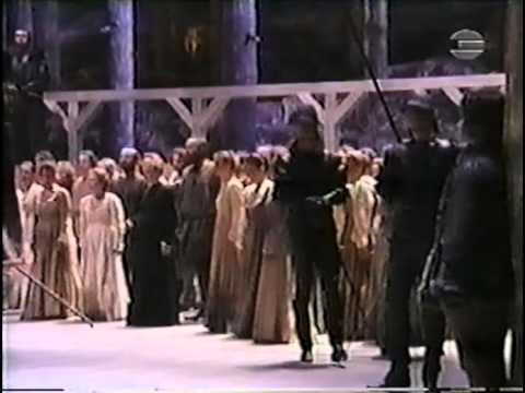 Il momento più importante dell'opera arriva alla fine del terzo atto: Guglielmo è costretto dal dittatore Gessler a centrare con la balestra una mela posta sulla testa di suo figlio. Prima invoca il figlio di non muoversi. Per Wagner questo era uno dei momenti più moderni di quest'opera, quella che all'epoca veniva chiamata "musica dell'avvenire"...